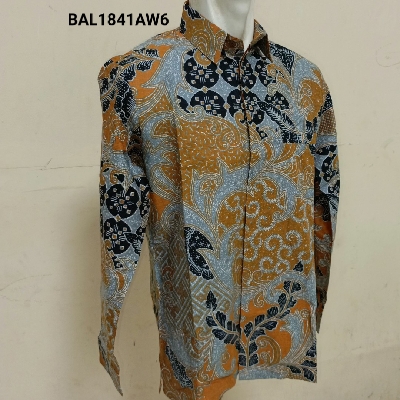 Kemeja Pria Lengan Panjang Printing Motif Batik Pola Reguler Bahan Katun Dilapisi Furing