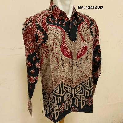 Kemeja Pria Lengan Panjang Printing Motif Batik Pola Reguler Bahan Katun Dilapisi Furing