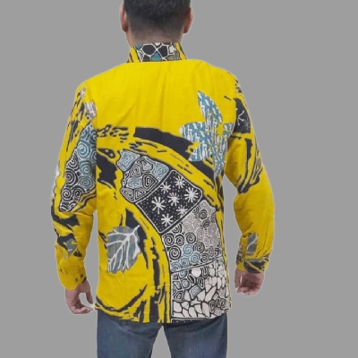Kemeja Pria Lengan Panjang Printing Motif Batik Pola Reguler Bahan Katun Dilapisi Furing